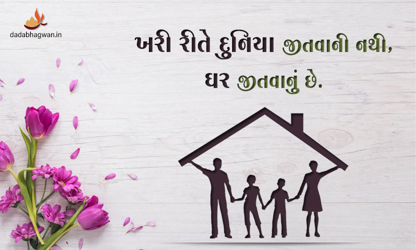 પરમ પૂજ્ય દાદા ભગવાન કહે છે, “ખરી રીતે દુનિયા જીતવાની નથી, ઘર જીતવાનું છે.”