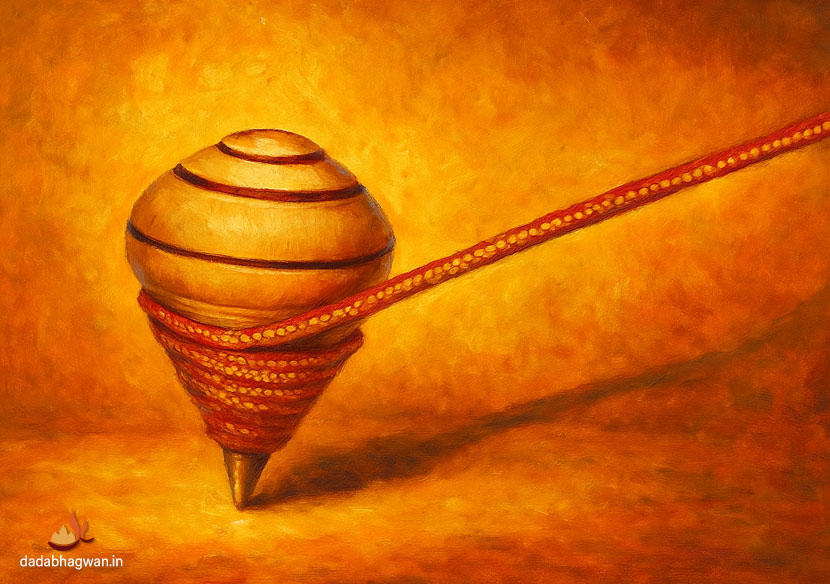 જેમ દોરી વીંટેલો ભમરડો ઉકલે એમાં ભમરડાનો કોઈ પુરુષાર્થ નથી, તેમ પ્રકૃતિ નાચ કરાવે છે, તેમાં પોતે માને કે “હું નાચ્યો!” તો એમાં પોતાનો શો પુરુષાર્થ? લાખો રૂપિયા કમાય તો કહે “હું કમાયો” ને પછી ખોટ જાય તો કહે “ભગવાને ખોટ આપી!” આમ સાચી સમજણ નહીં હોવાથી આવા વિરોધાભાસમાં જીવન જીવાય છે.
